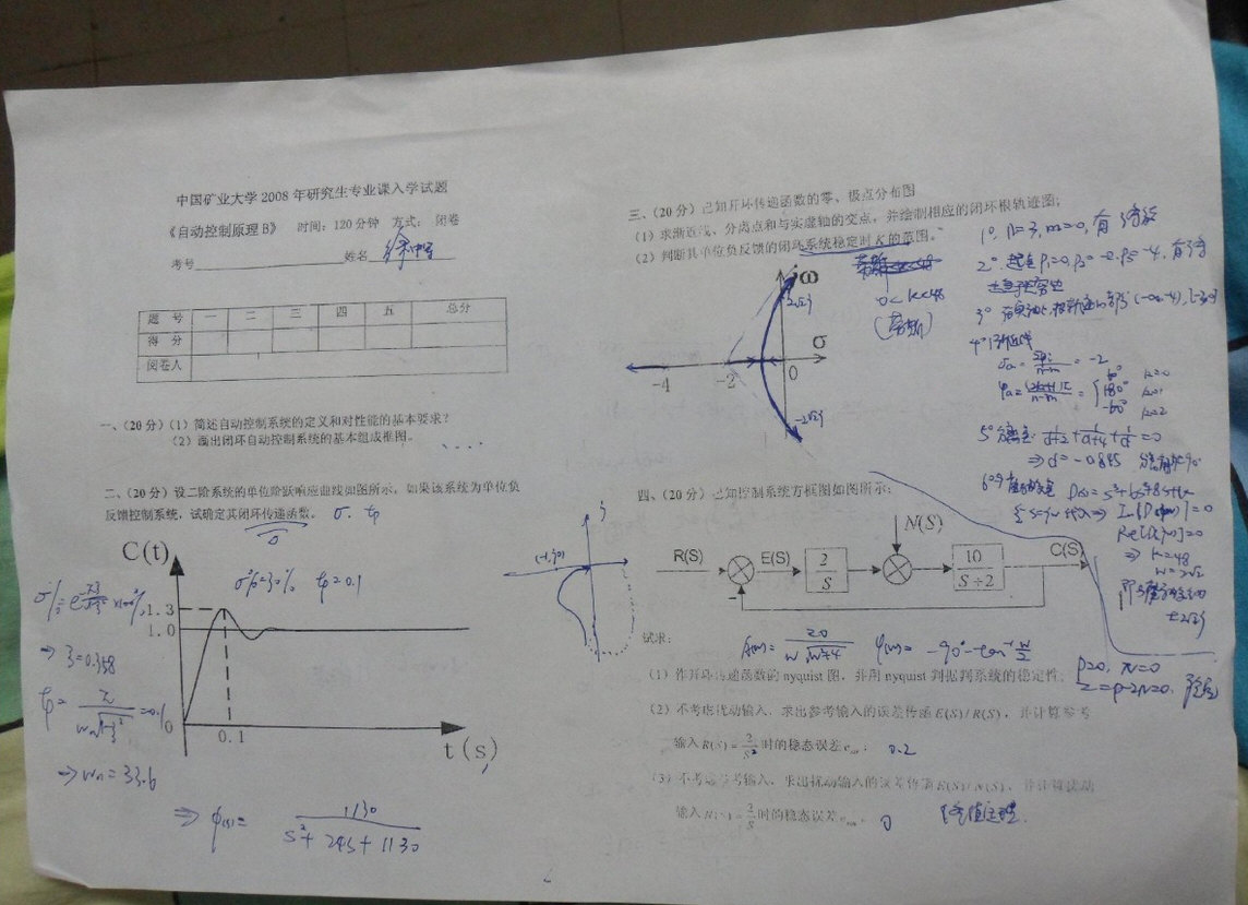 中国矿业大学2006-2009年自动控制原理半岛在线注册复试题答案参考(9)