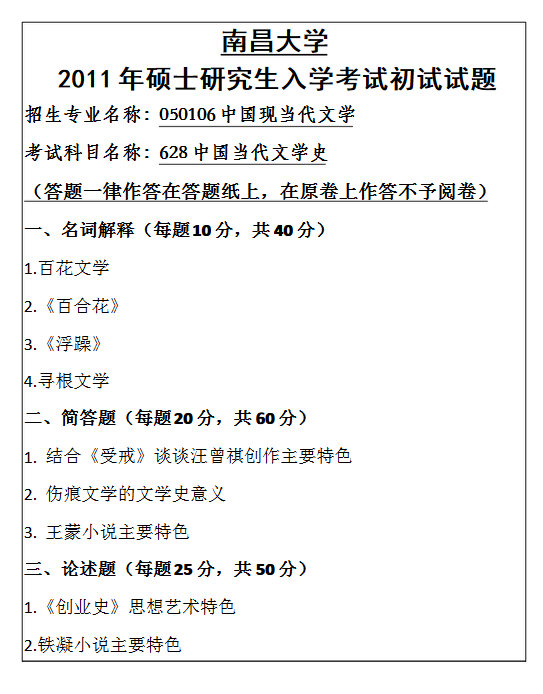 南昌大学628中国当代文学史历年半岛在线注册真题汇编(2)
