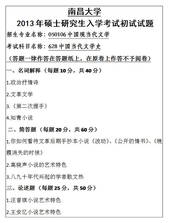 南昌大学628中国当代文学史历年半岛在线注册真题汇编(4)