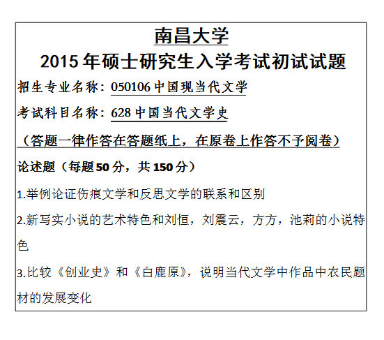 2015年复旦大学中国语言文学系808中国古代与现代文学半岛在线注册真题(回忆版)
