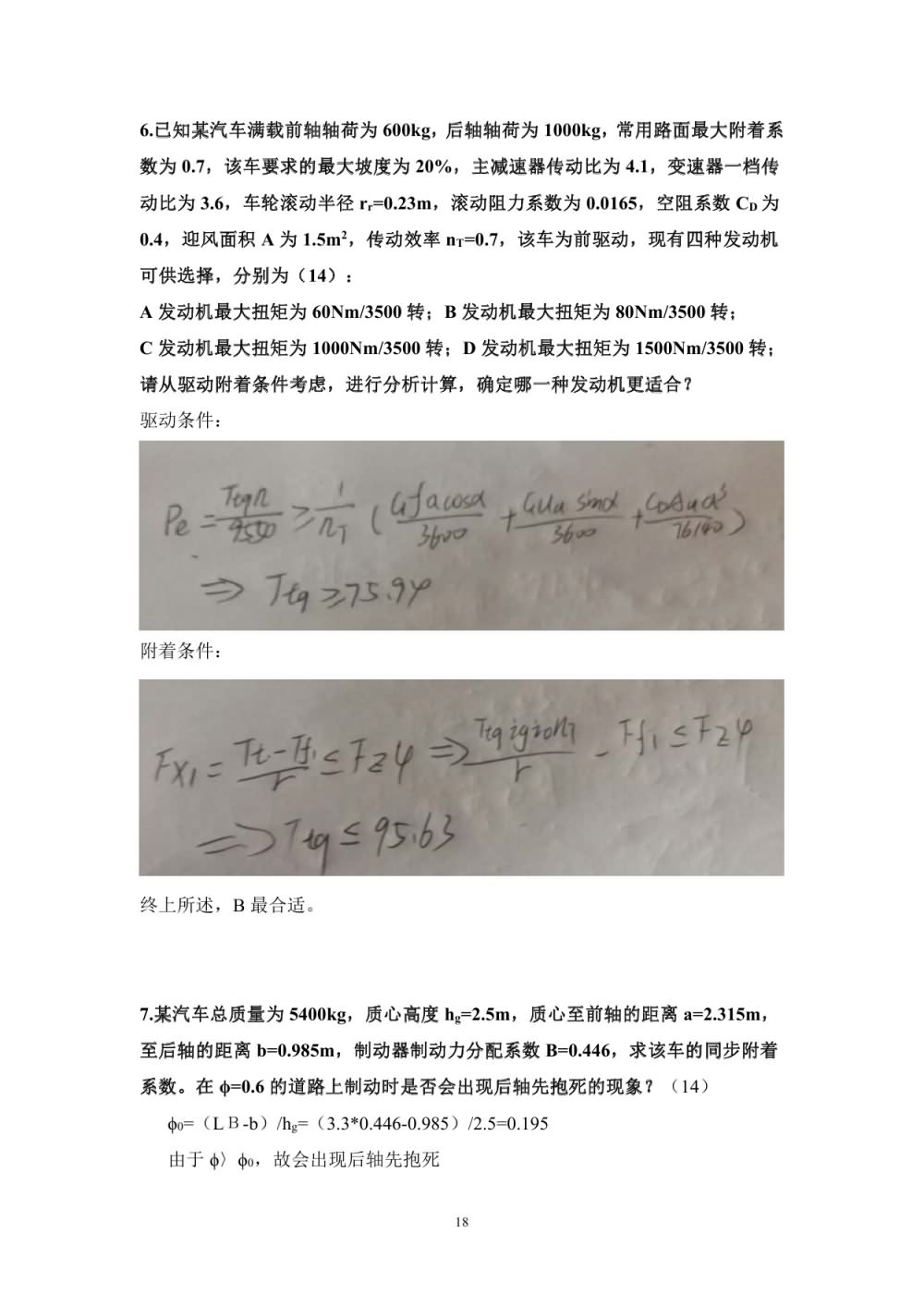 科目名称:汽车理论与设计 适用专业:车辆工程