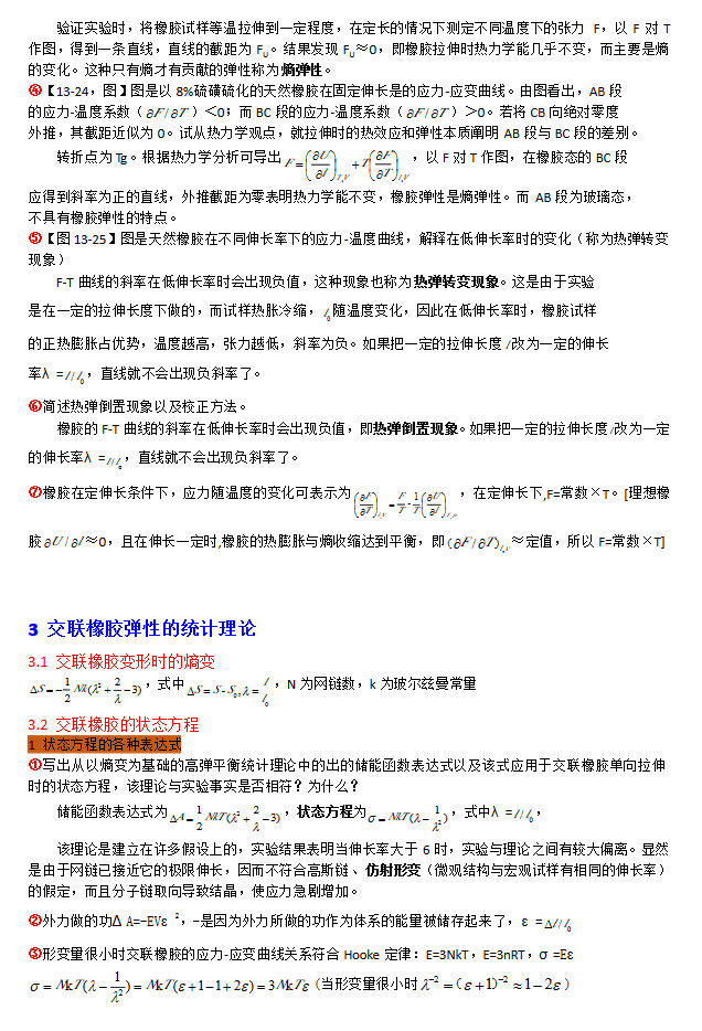 高分子物理半岛在线注册习题整理06 橡胶弹性(3)