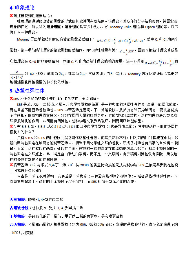 高分子物理半岛在线注册习题整理06 橡胶弹性(5)