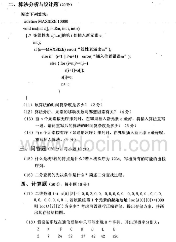 2017年华北电力大学844数据结构半岛在线注册真题选择十个,一个两分,20分填空十个空,20分,这些都是最简单的,树的知识,链表的知识简答题,顺序和链式结构优缺点,哈希表构建基本思想设置岗哨的作用并举例算法题,单链表查找最大值算法10分,求叶子节点数算法7分,求完全二叉树深度算法8分,邻接表定义以及图中什么什么想不起来了 ...