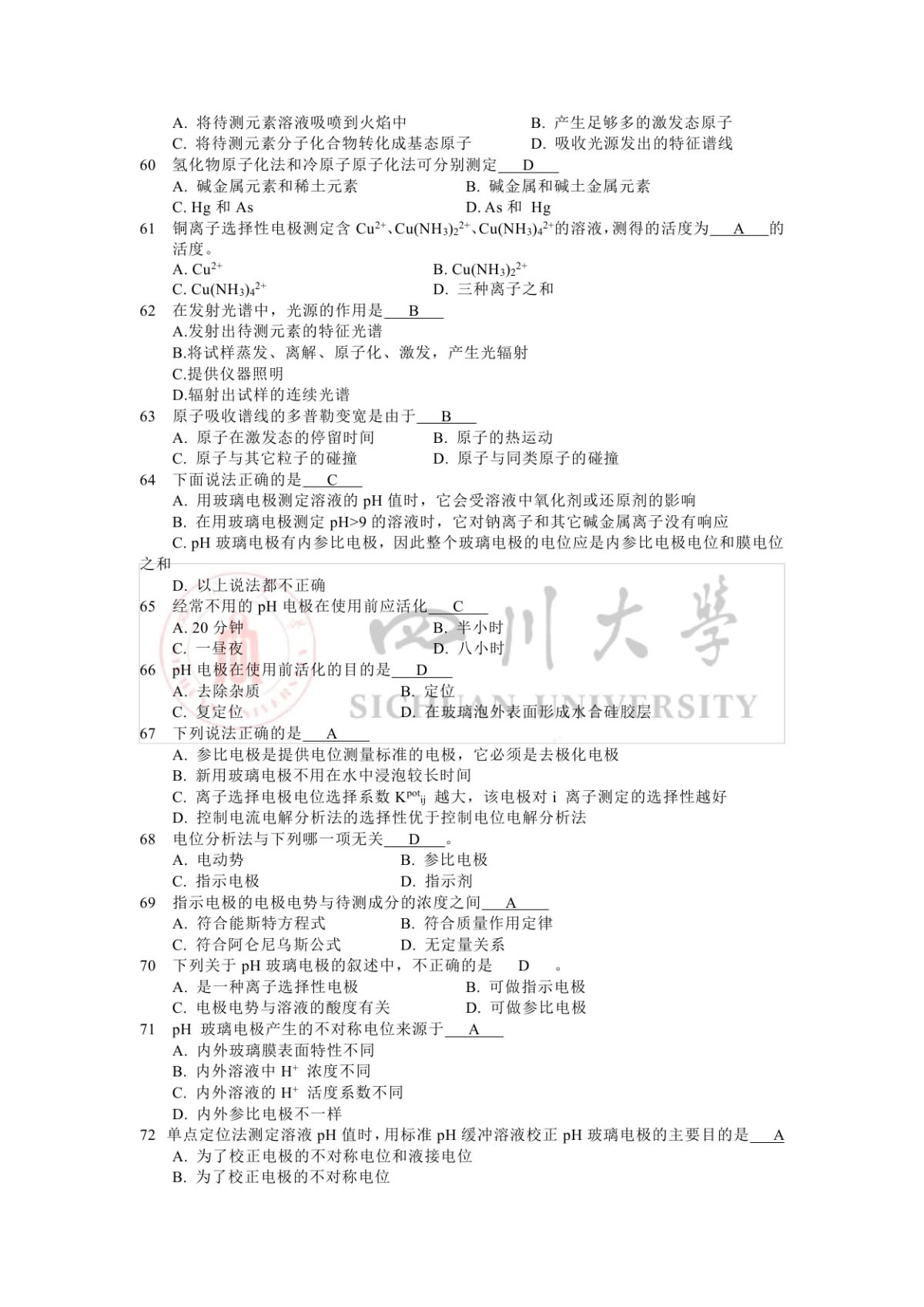 四川大学仪器分析半岛在线注册复习题(5)