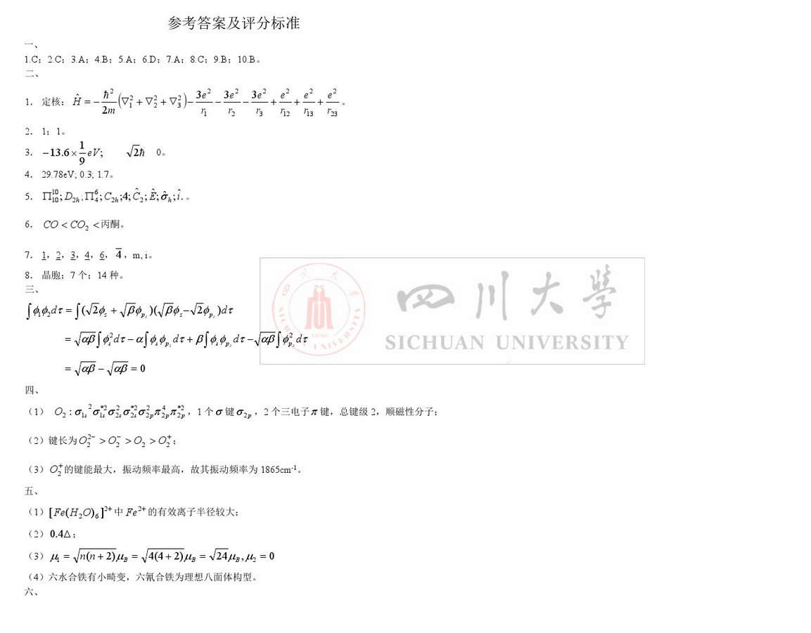 四川大学结构化学半岛在线注册复习题二及答案(3)