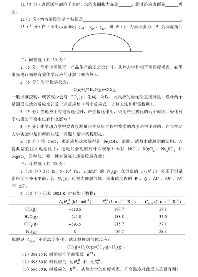 华中科技大学2008年物理化学(603)半岛在线注册真题(2)