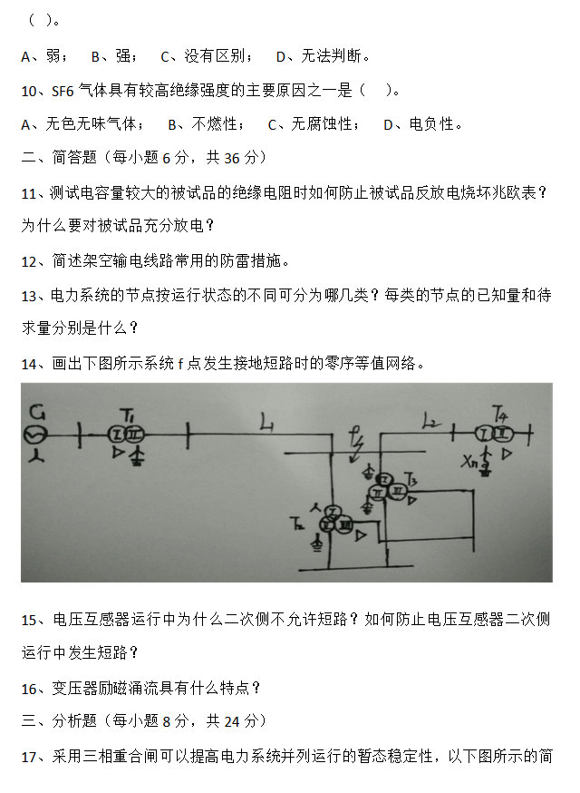 长沙理工2016年电气工程基础研究生复试真题(3)