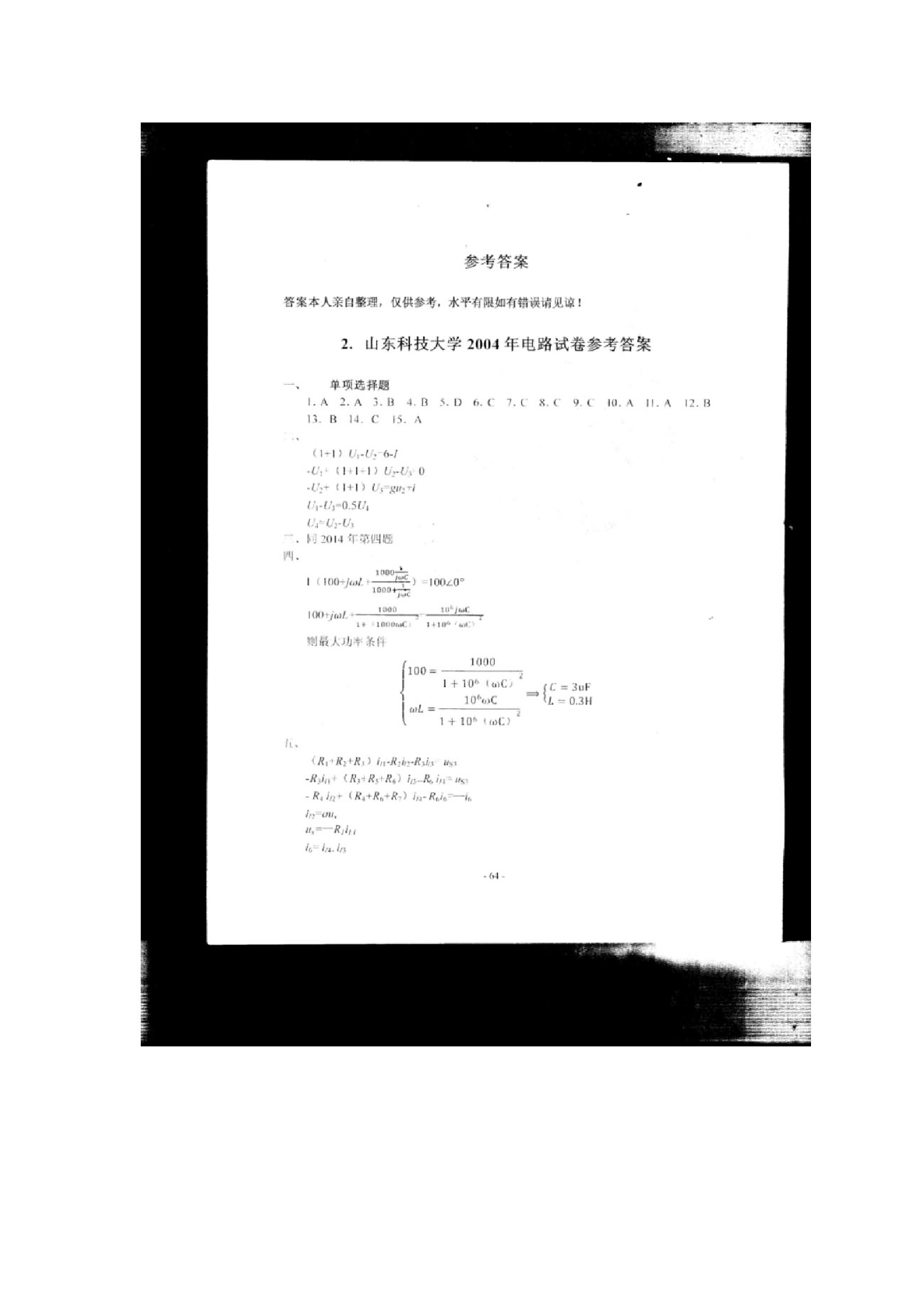2004-2016山东科技大学半岛在线注册电路真题答案手写扫描版(28)