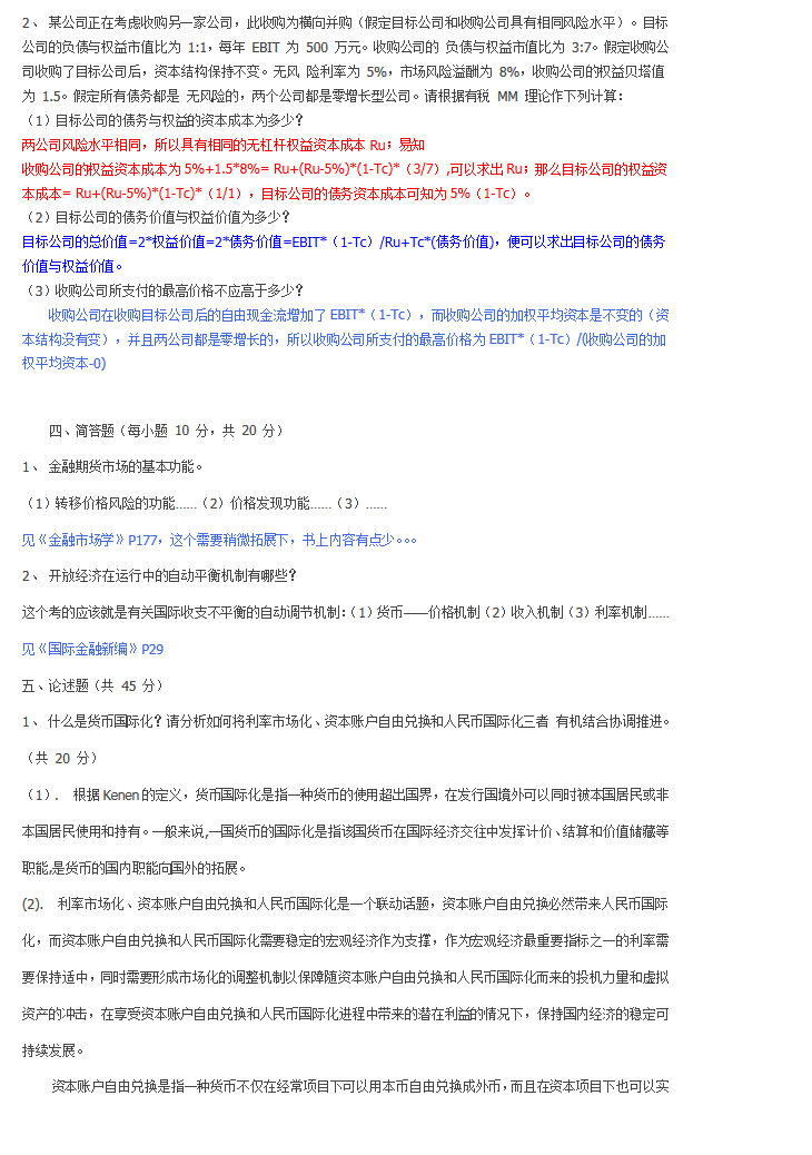 一、名词解释  1.格雷欣法则  2.金融衍生工具  3.丁伯根原则  4.国际储备  5.外债  6.有效资本市场  7.托宾Q  8.特别提款权  二、简答题  1.一般性货币政策原则及其传导机制  2.影响汇率变化的因素  3.利率期限结构理论  4.国际货币体系的内容及其演变  三、论述题  1.对金融创新的认识   ...