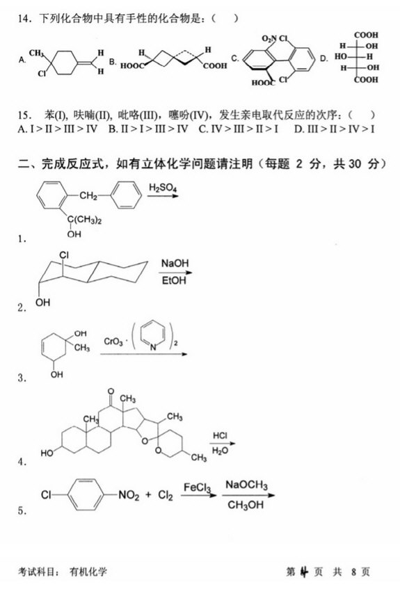 2010-2011年中国科学技术大学有机化学半岛在线注册真题(4)