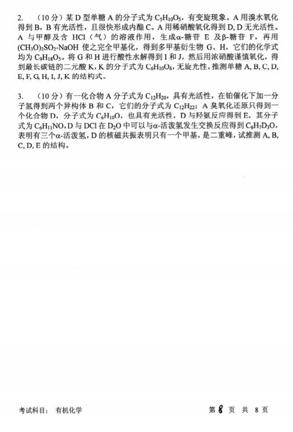 2010-2011年中国科学技术大学有机化学半岛在线注册真题(8)