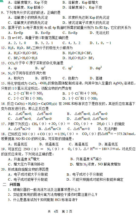 郑州大学2009无机化学半岛在线注册复试试题(2)