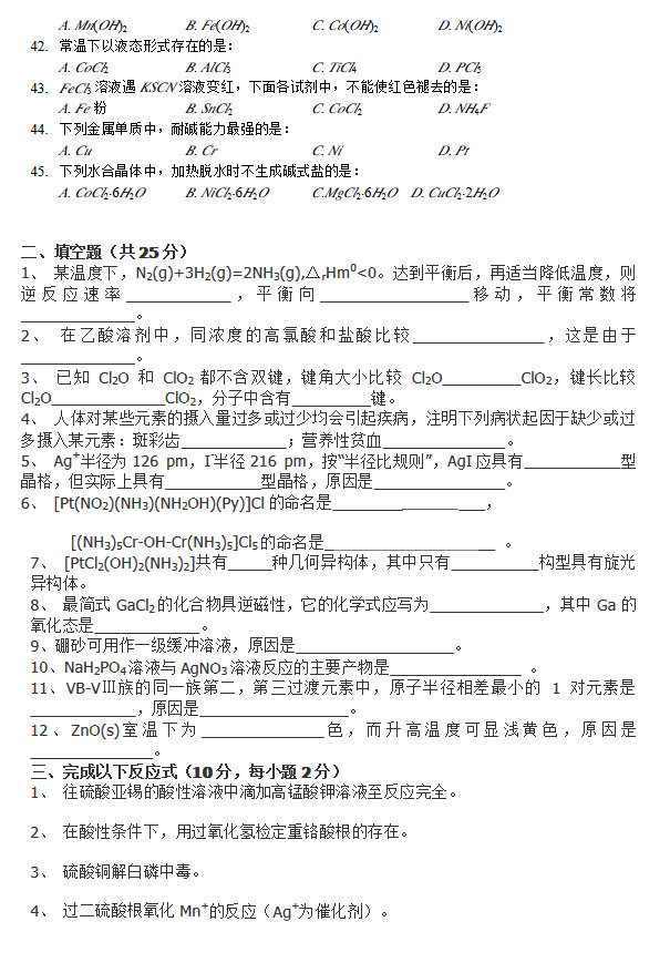 华南理工大学2007年半岛在线注册专业课试卷无机化学上传的附件9ae6bc3db71953fe7fa24e31575216d9.rar(44.00KB) ...
