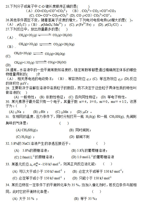 郑州大学2013-2012无机化学半岛在线注册复试试题(14)