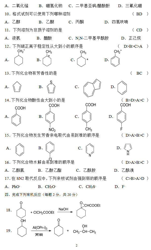 2016青岛海洋大学有机化学半岛在线注册试题及答案(2)