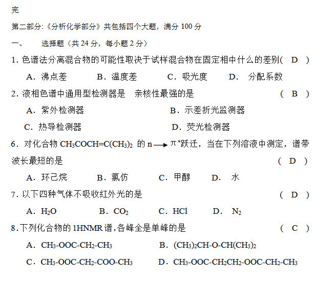 2016青岛海洋大学有机化学半岛在线注册试题及答案(5)