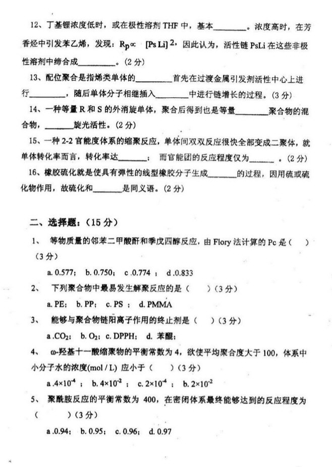 武汉理工大学2010,2006高分子化学半岛在线注册真题(2)