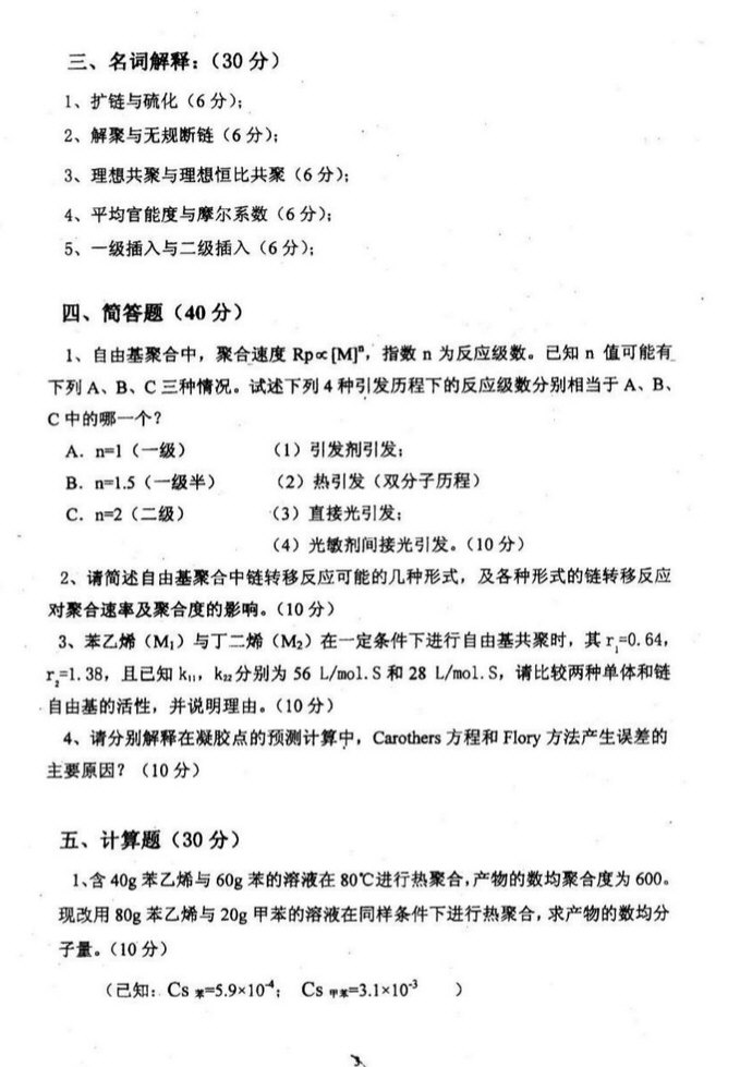 武汉理工大学2010,2006高分子化学半岛在线注册真题(3)