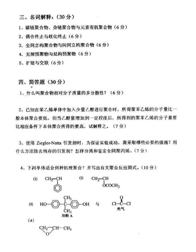 武汉理工大学2010,2006高分子化学半岛在线注册真题(7)