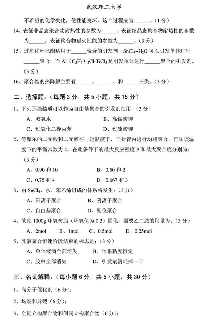 武汉理工大学材料学院2011高分子化学半岛在线注册真题(2)