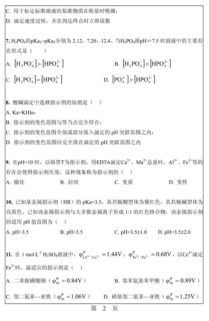 华南理工大学2010年分析化学半岛在线注册真题(2)