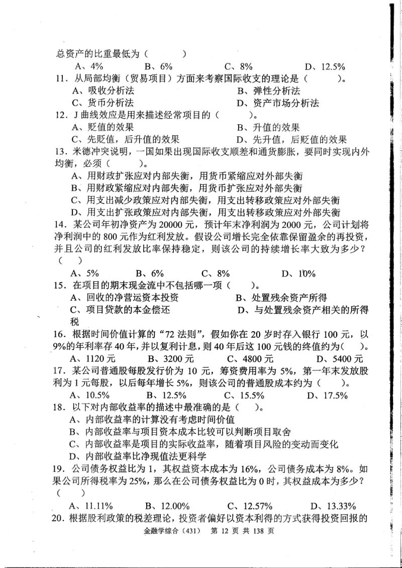中央财经大学2015-2011金融学综合431半岛在线注册真题(11)