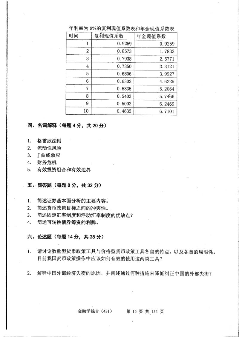 中央财经大学2015-2011金融学综合431半岛在线注册真题(19)