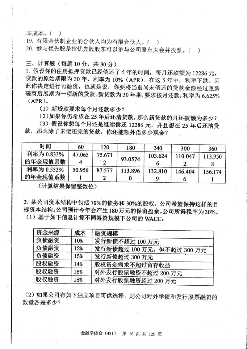 中央财经大学2015-2011金融学综合431半岛在线注册真题(4)