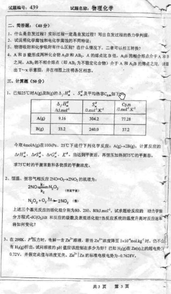 东南大学1998-2013年的(除了2010)物理化学半岛在线注册真题(22)