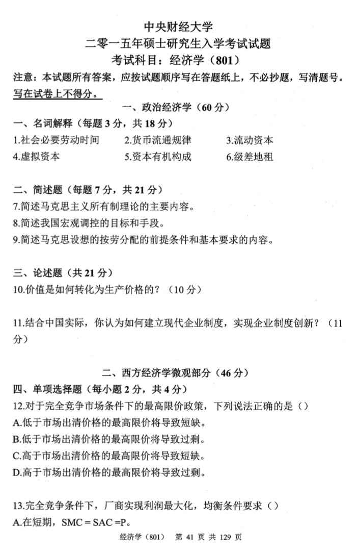 中央财经大学801经济学2016年2015年历年半岛在线注册真题解析(5)
