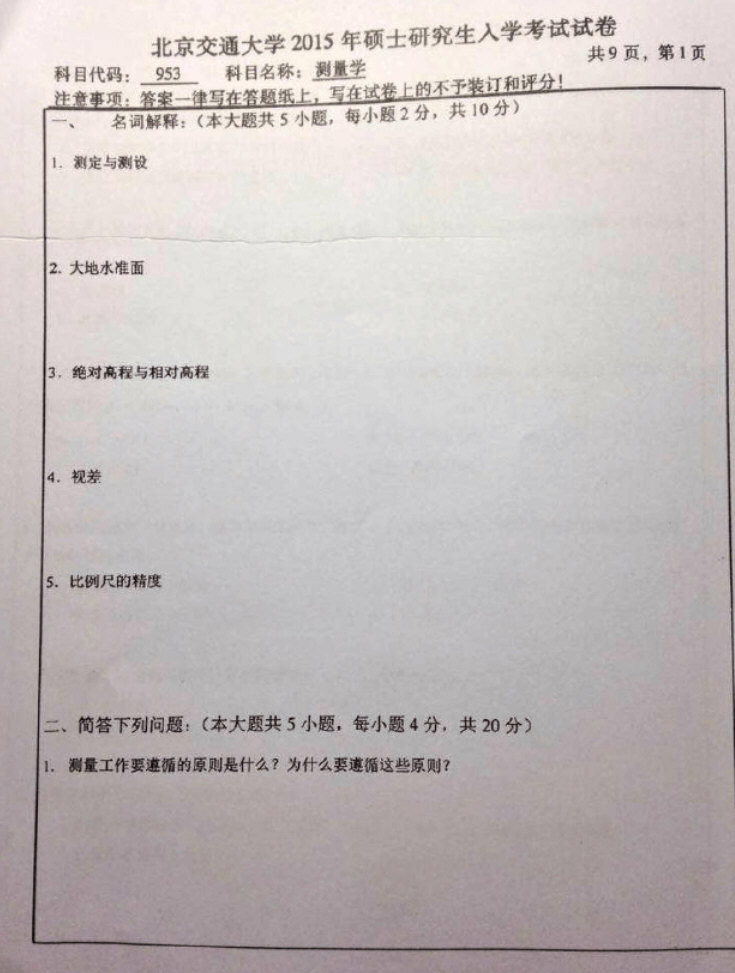北京交通大学2015-2014测量学半岛在线注册真题(5)
