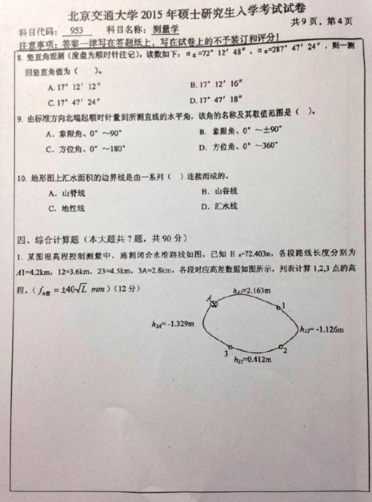 北京交通大学2015-2014测量学半岛在线注册真题(8)