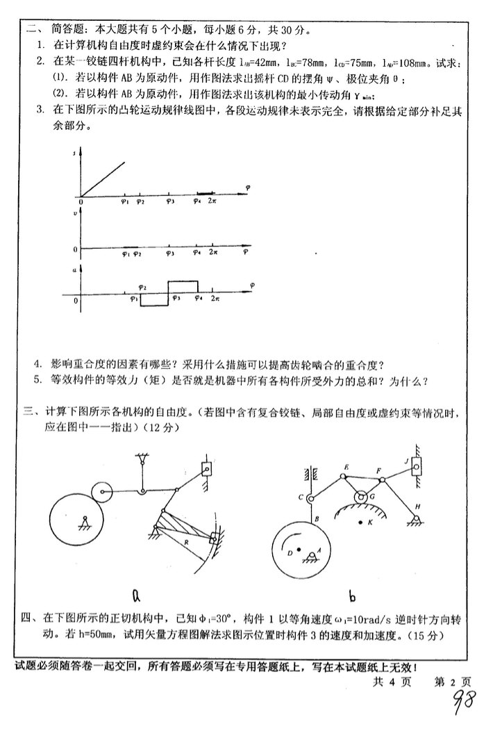 2008中国矿业大学机械原理专业课半岛在线注册真题(2)
