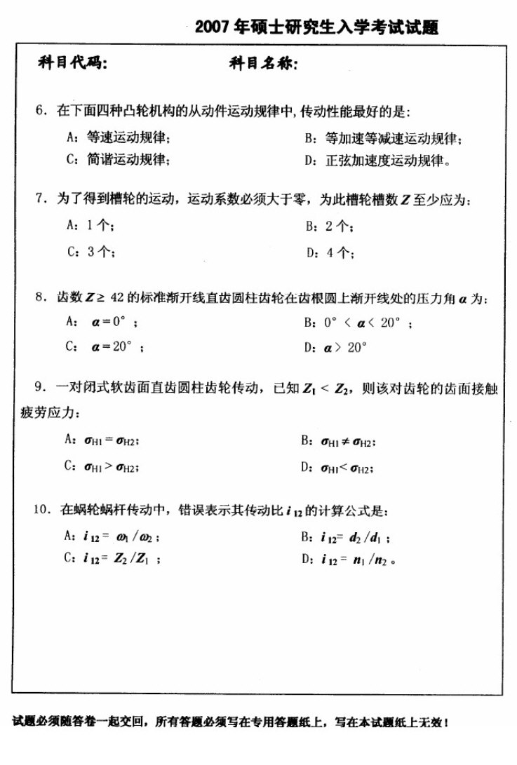 2007中国矿业大学机械原理专业课半岛在线注册真题(2)
