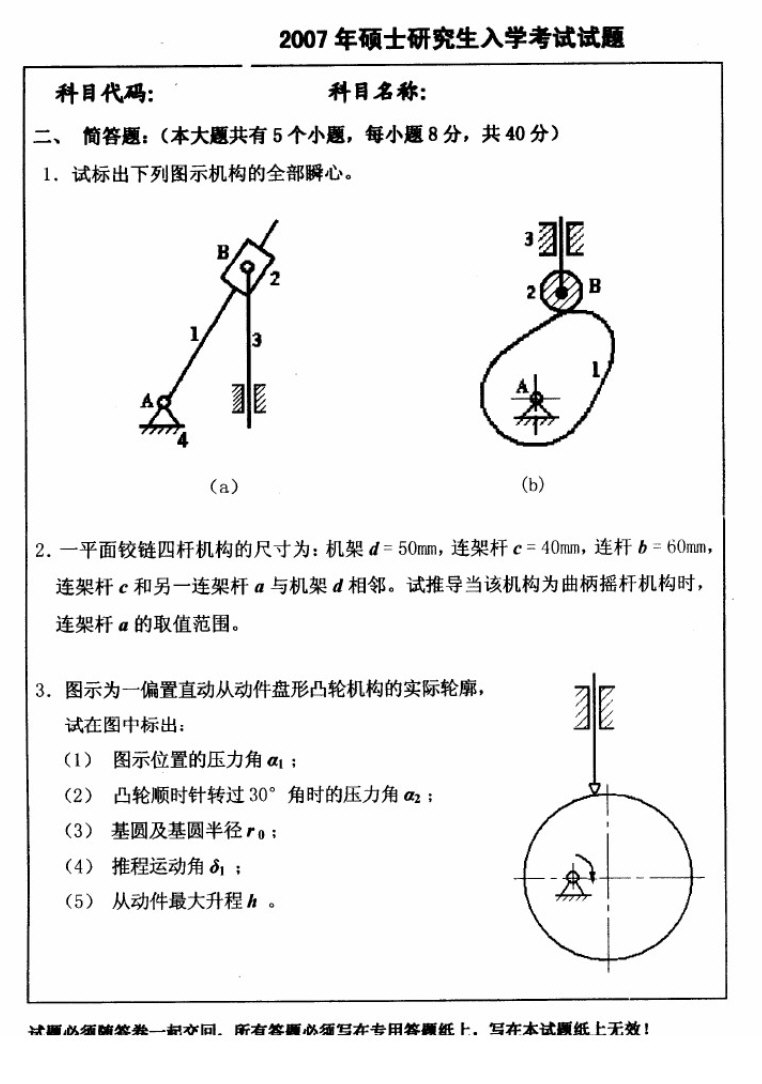 2007中国矿业大学机械原理专业课半岛在线注册真题(3)
