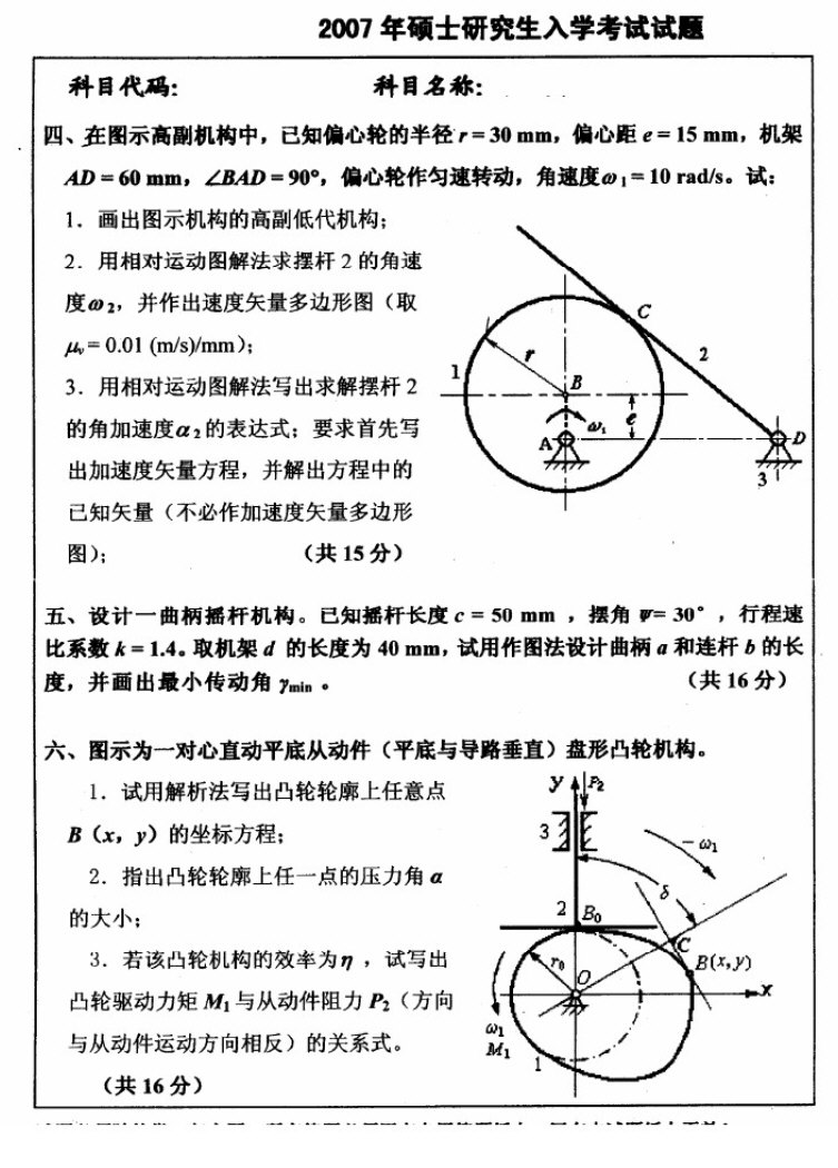 2007中国矿业大学机械原理专业课半岛在线注册真题(5)