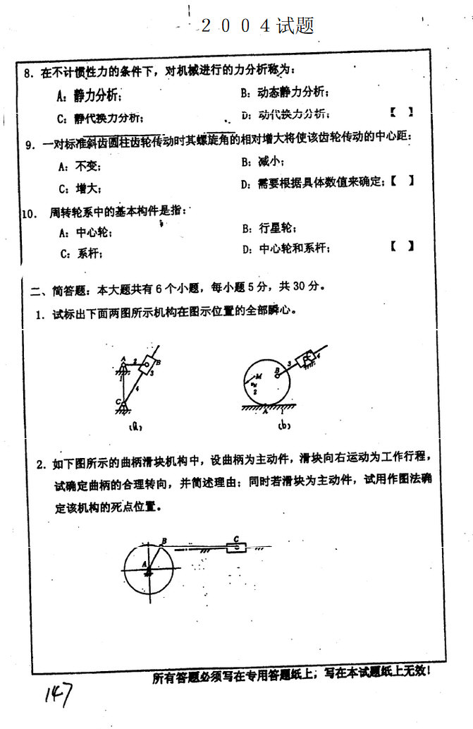 2004中国矿业大学机械原理专业课半岛在线注册真题(2)