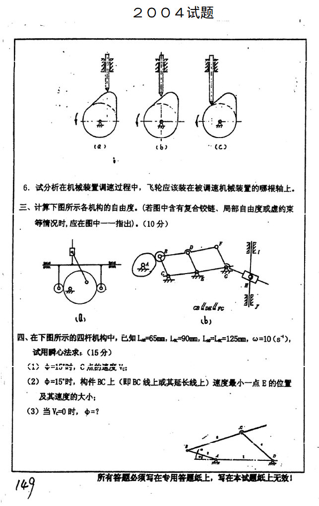 2004中国矿业大学机械原理专业课半岛在线注册真题(4)