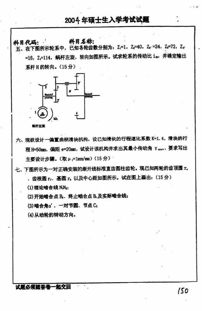 2004中国矿业大学机械原理专业课半岛在线注册真题(5)