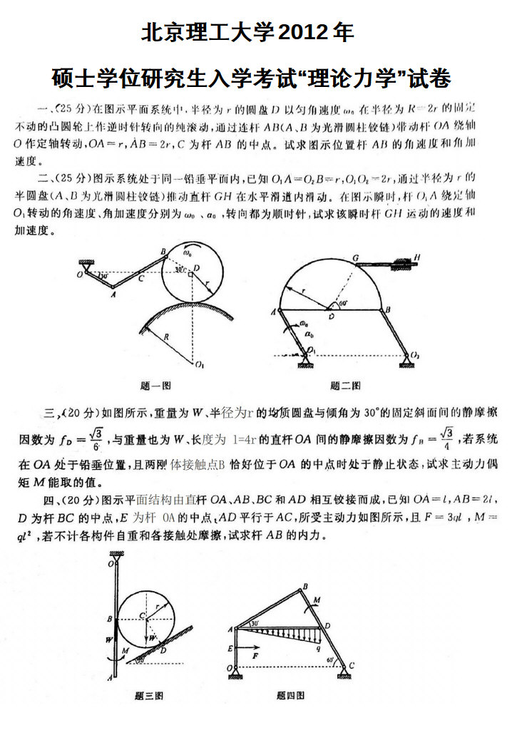 专业课半岛在线注册资料 本站小编 半岛在线注册 2018-08-252011北京理工大学848理论力学半岛在线注册真题