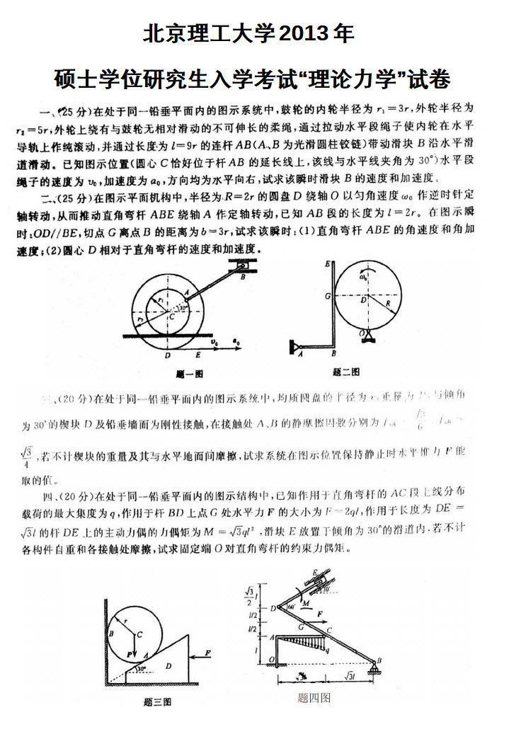 2013北京理工大学848理论力学半岛在线注册真题