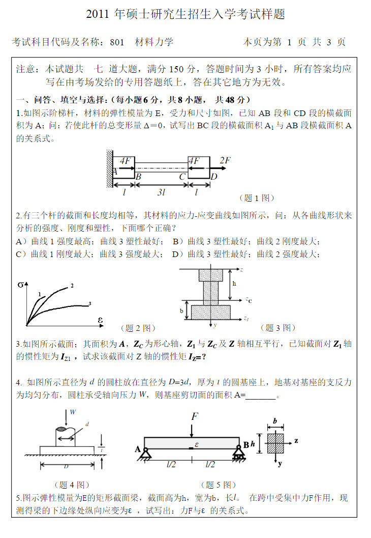 2010年西北工业大学841材料力学半岛在线注册试题(回忆版) ...