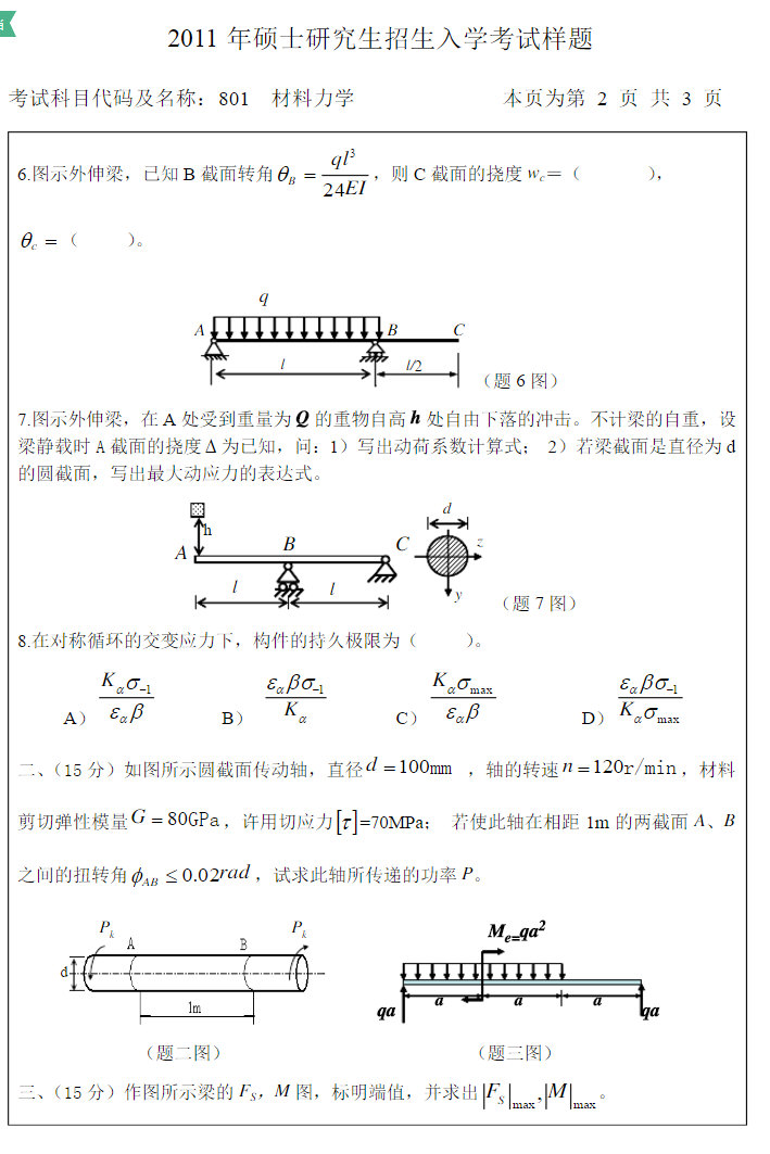 2011大连交通大学材料力学半岛在线注册真题(2)