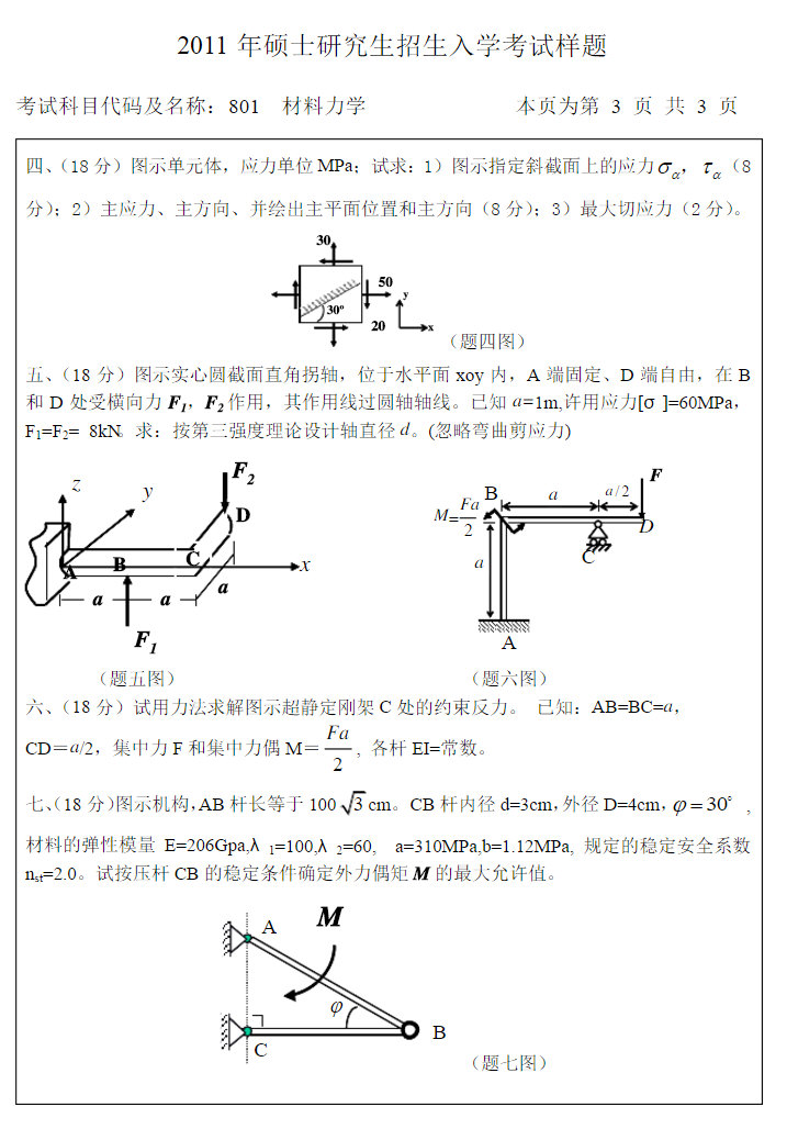 2010年西北工业大学841材料力学半岛在线注册试题(回忆版) ...