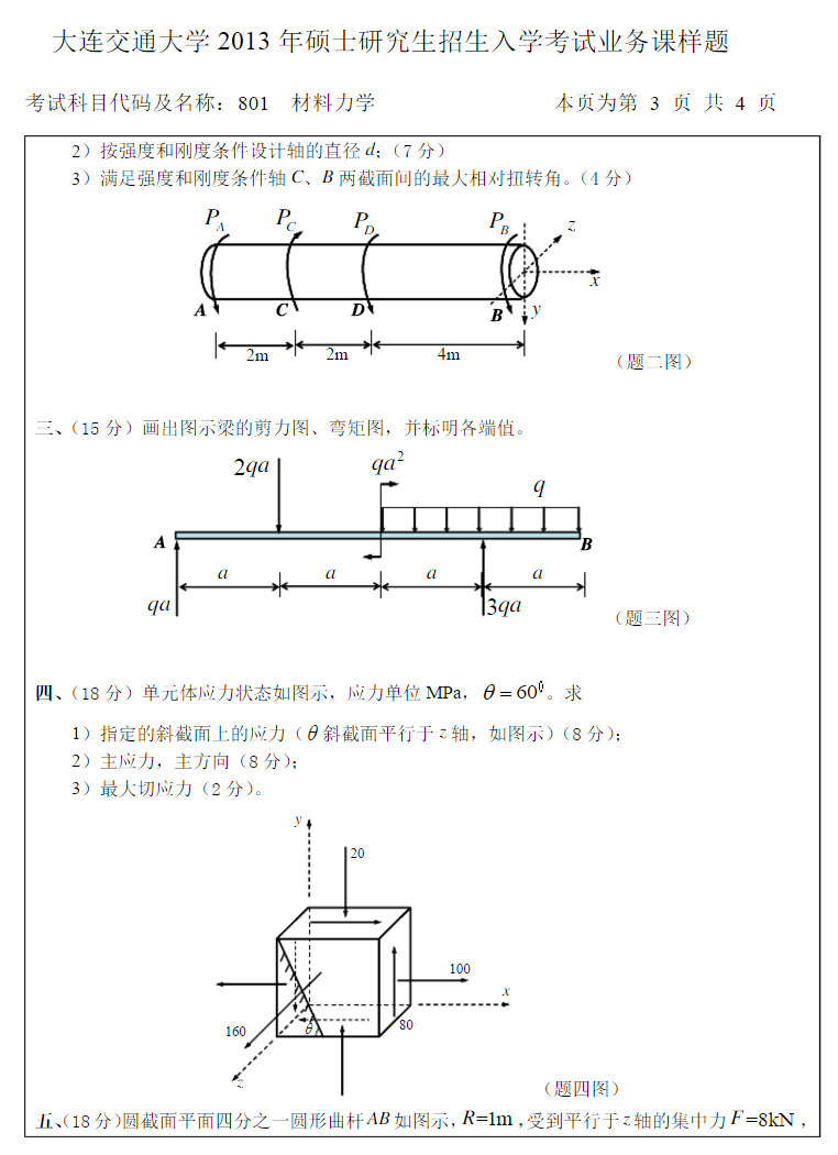 2010年西北工业大学841材料力学半岛在线注册试题(回忆版) ...