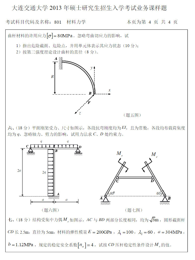 2013大连交通大学材料力学半岛在线注册真题(4)