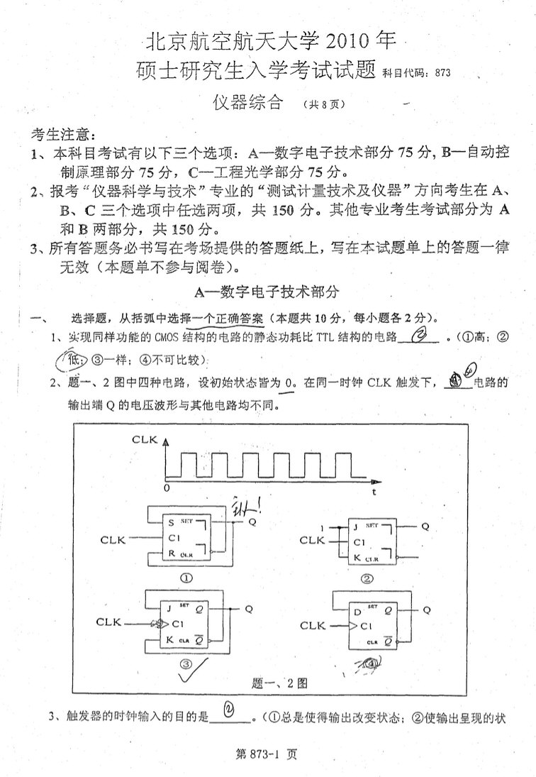 北京航空航天大学2010仪器综合873半岛在线注册真题