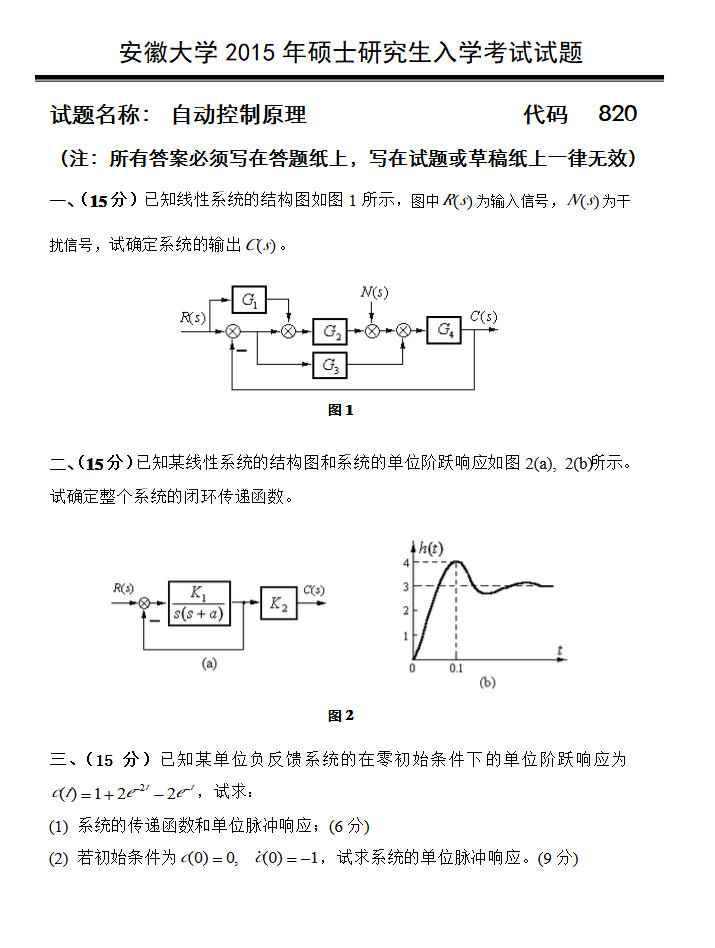 安徽大学2015年自动控制原理820半岛在线注册真题