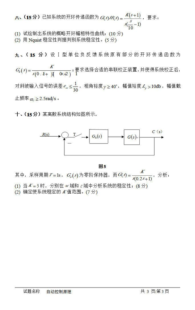 安徽大学2015年自动控制原理820半岛在线注册真题B卷(3)